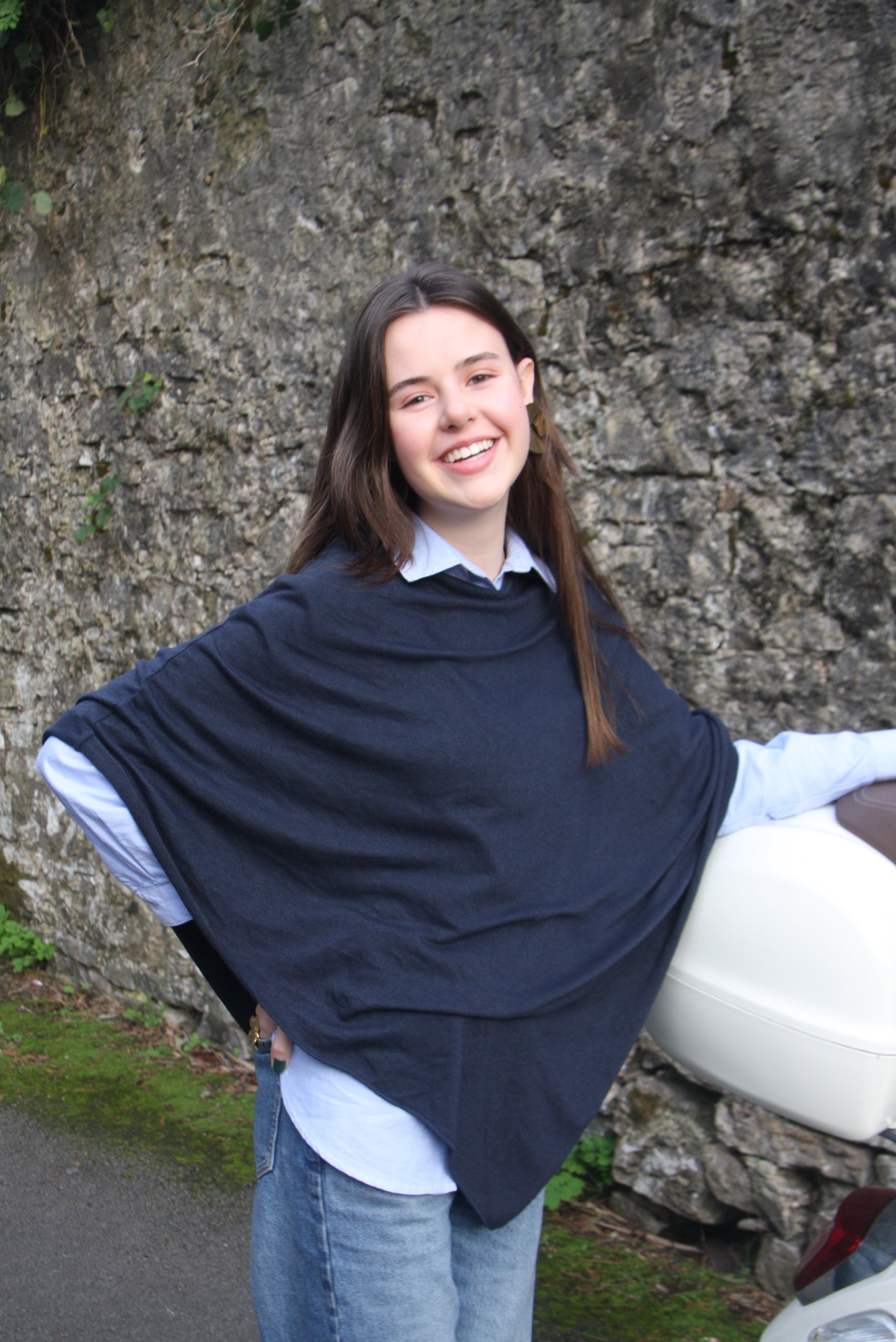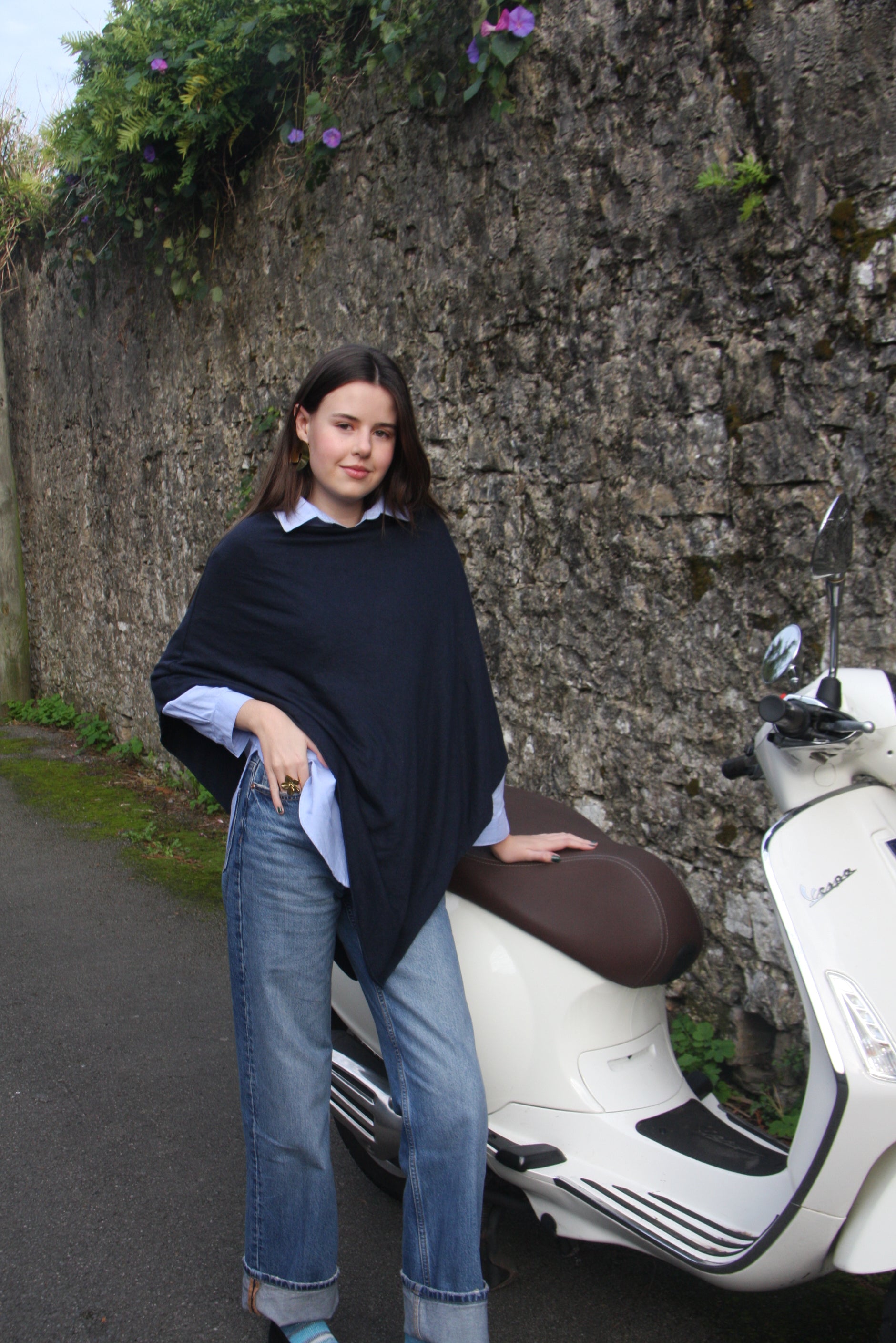 Poncho color Azul Marino, fabricado en Italia. Talla única.